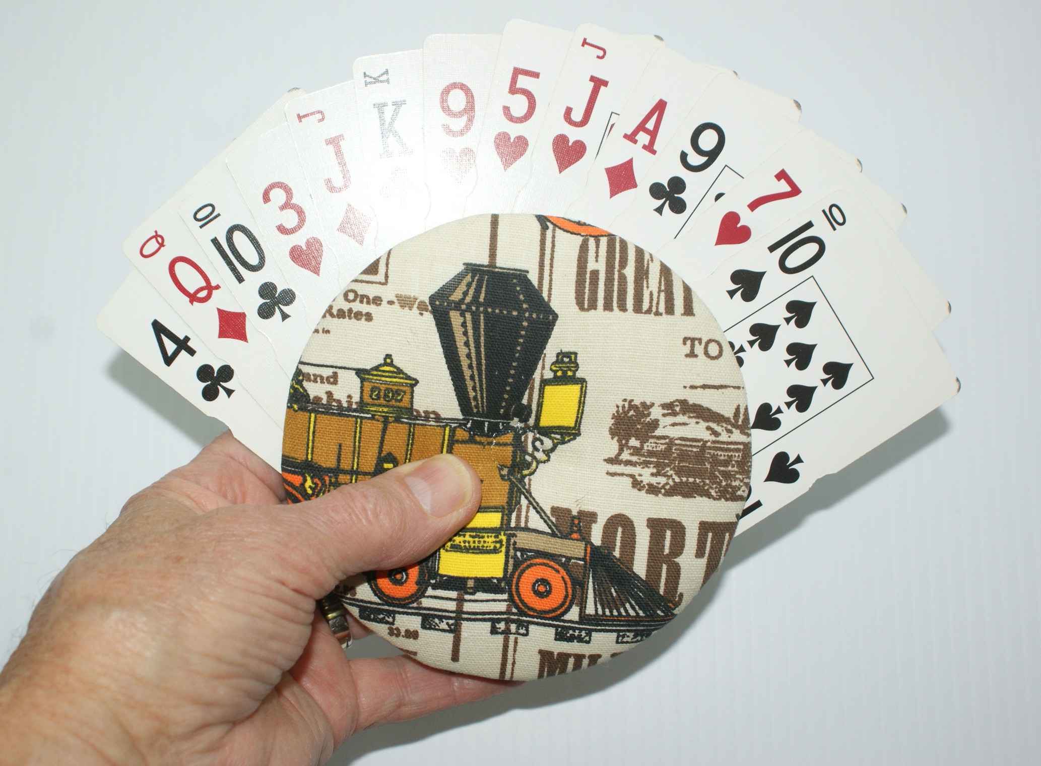 Introducing my newest playing card holder: The Amazing Railroad Canasta Gripper!**
