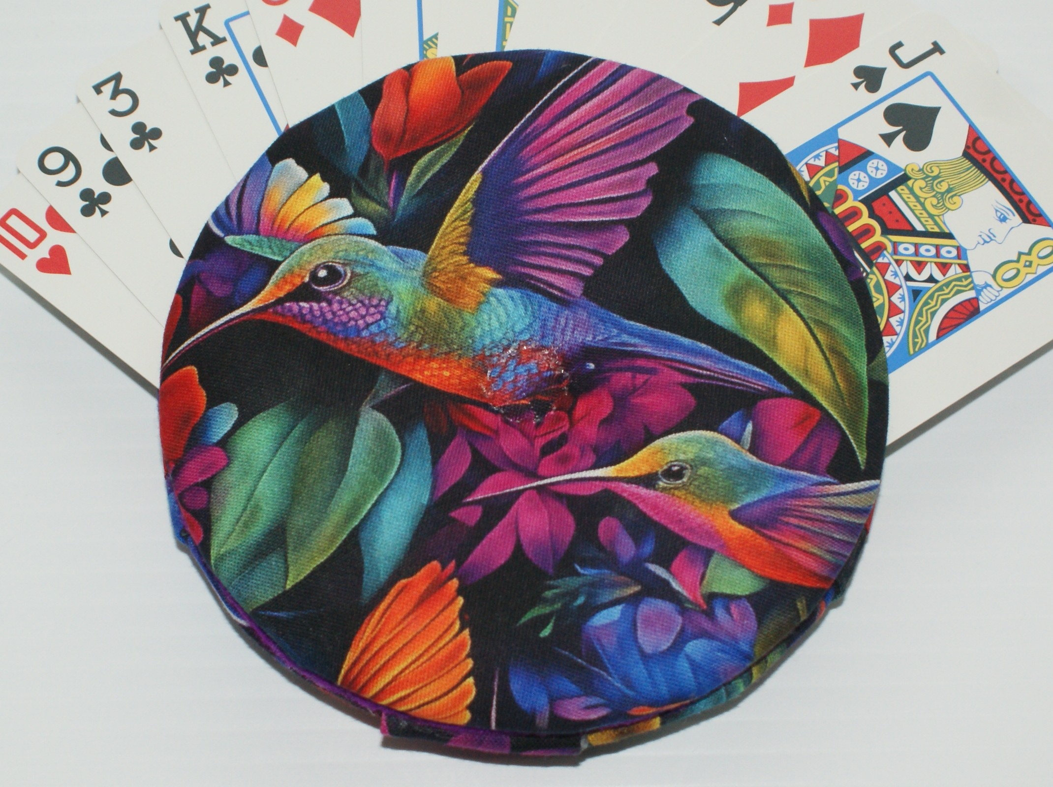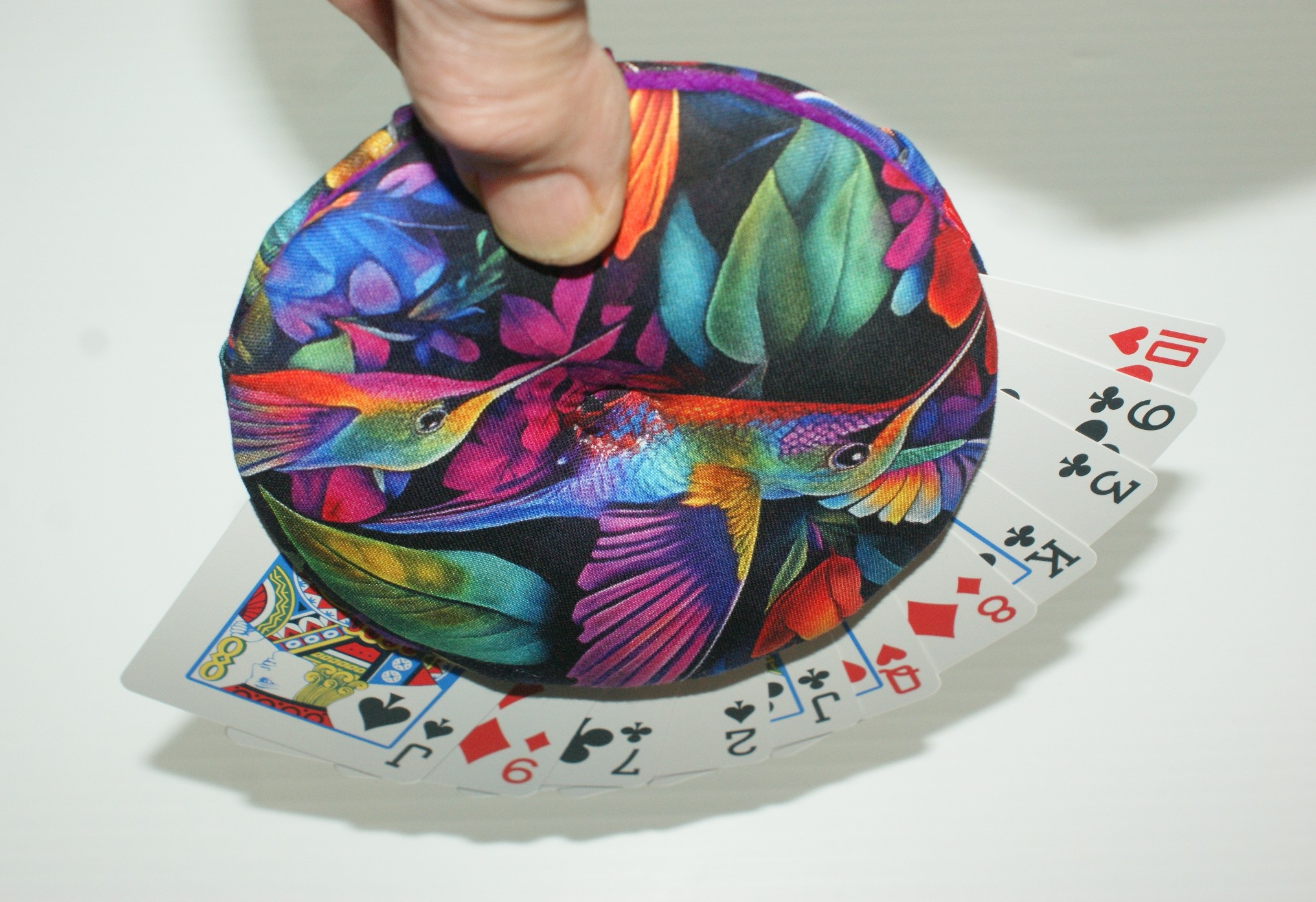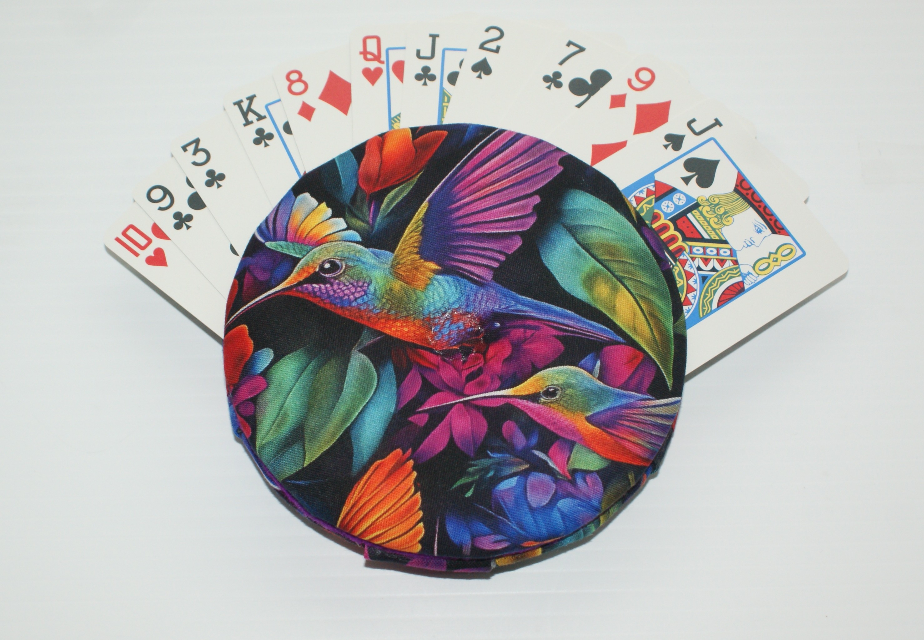 >Photos are for illustration only unless stated. The designs on this beautiful fabric tend to change throughout the fabric, so no two cardholders are alike. (Playing cards shown are not included.)