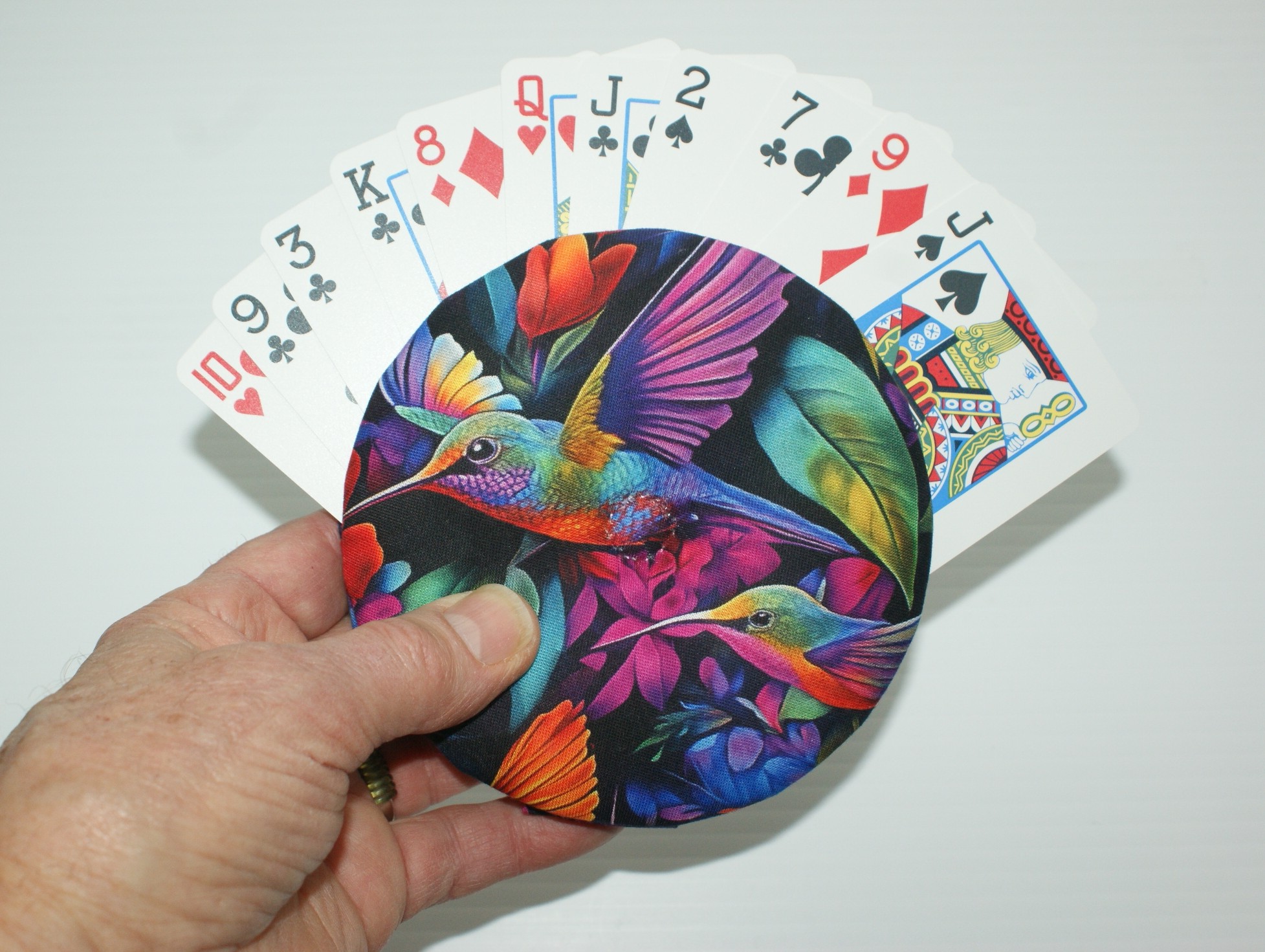 Made with quality materials, I create my Grippers in a little shop located in my backyard. I do it all: buy all the materials needed, prepare everything to be made into one of my unique playing card holders, package and ship them, and do all the advertising needed. This is actually a hobby of mine as I'm retired, so I try to keep things down so as not to turn it into a job!